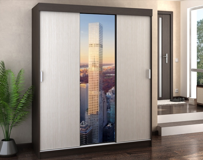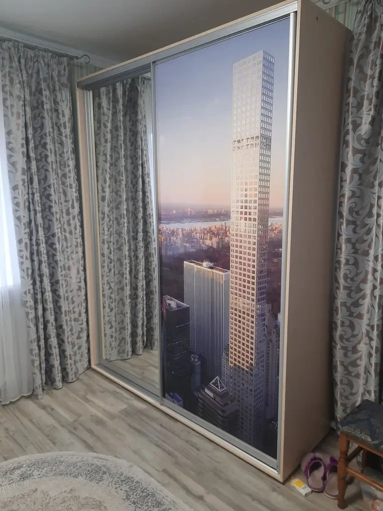 Самоклеюча наклейка на шафу швидко наноситься на будь-яку структуру ДСП, скло, дзеркало або рівну поверхню