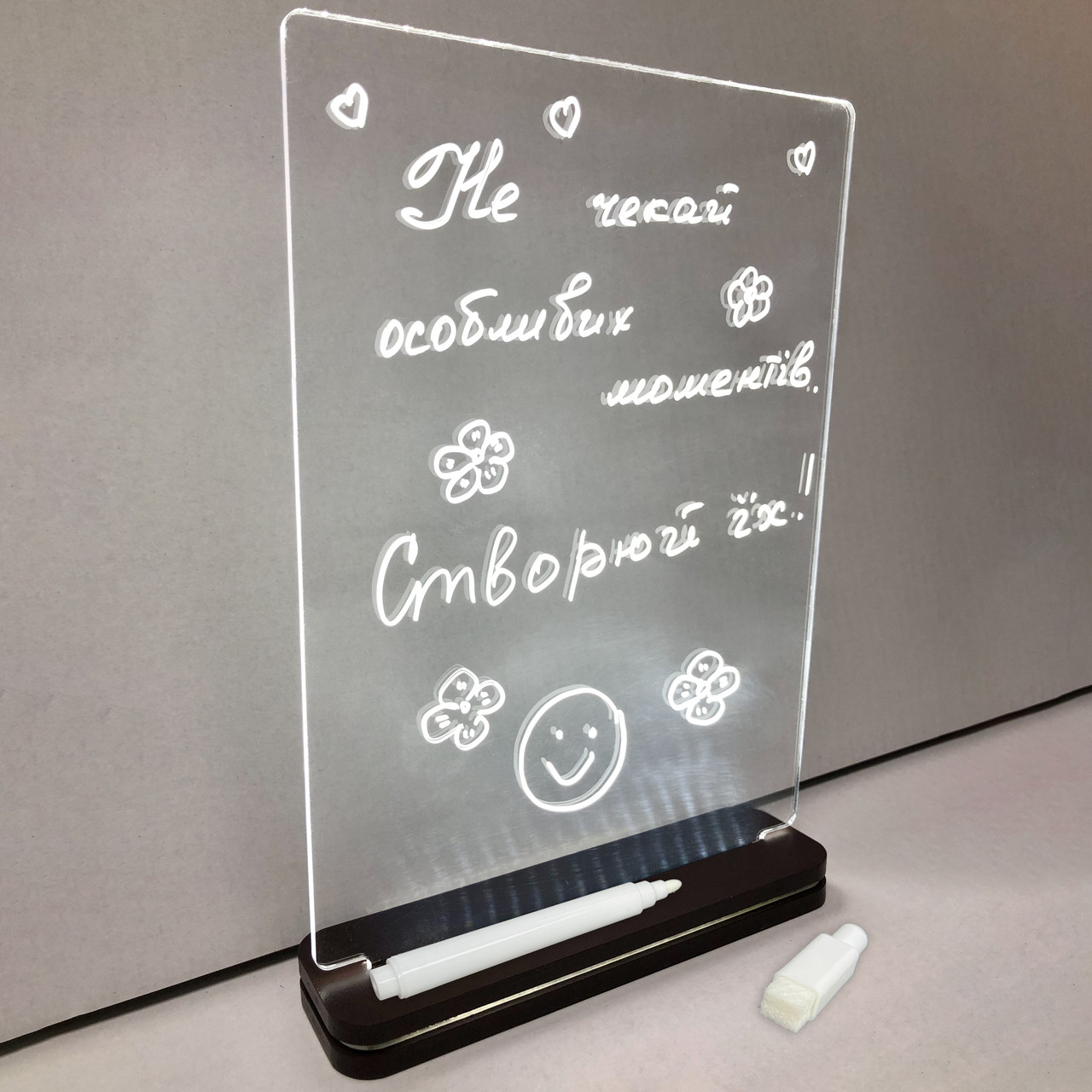 Будьте першим, хто залишив відгук про “Світильник нічник акриловий Планер прозорий 24 х 18 см з білим маркером у комплекті (АСВА4-12)”