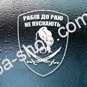 Автомобільна Наклейка “Рабів до раю не пускають” S 210х280 мм Білий